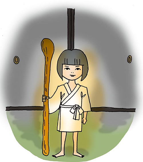 【性格】きれいな水の出る村には乙女の姿で現れて、草の繊維と水を使って紙の漉き方を教えたといいます。面倒みがよく、洗濯の方法や、水田の作り方なども教えてくれる家庭的な面のある神さまです。