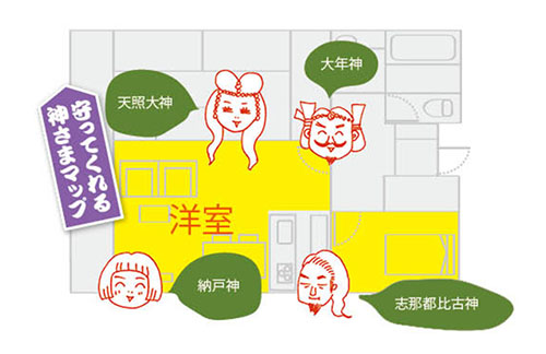 洋室タイプの部屋は、リビング、寝室、子ども部屋などいろいろあります。どの部屋も毎日の生活に欠かせない場所で、くつろいだり、休息をとったりするための大切な空間です。家を守る神さまたちが集まりやすいところでもあるので、こういった場所を清浄に保つと、家族運がアップし、さまざまな幸運パワーがみなぎってきます。