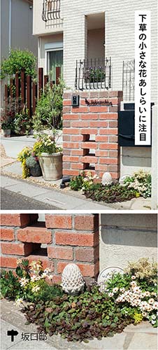 家の門扉や表札まわりの小さなスペースは、草花を飾るだけで視線を集めるフォーカルポイントになります。道路と家の敷地の境界にあたる場所なので、季節感の出しやすい一年草を中心に草花を植えてみましょう。周囲の景観に溶け込むよう意識するのがポイントです。