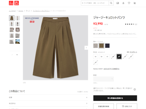 調べた結果を踏まえて、私も大人っぽく着こなせるキュロットパンツを探してみることに。見た目のデザインと生地の肌触りが気に入り、ユニクロの「ジャージーキュロットパンツ」を購入してきました。