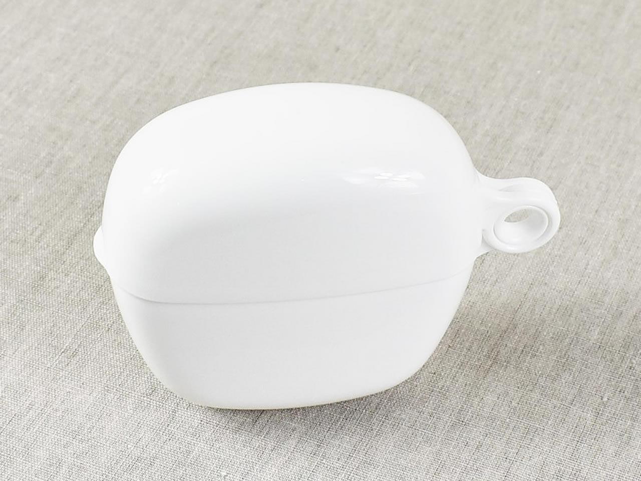 同商品を手にしてみて、まず気になるのはその大きさ。13.7(幅)×5.4(奥行)×10.8cm(高さ)もあり、通常のマスクケースと比べてなかなかの存在感を放っています。ケースは水洗い・アルコール消毒もできるポリプロピレン製。どの面も白一色の無地で、清潔感を感じさせてくれるシンプルなデザインです。