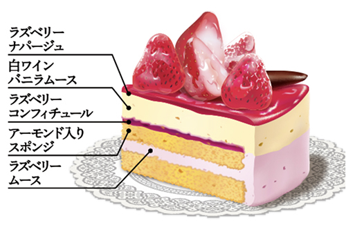 フランス語で白ワインの意味を持つ「vin blanc」と名付けられたプレミアムケーキは、スイーツ界の重鎮・武江章シェフが監修。自社ワイナリーの無濾過・非加熱の樽出し生ワイン白(主体品種:シャルドネ)を使用したバニラムースと、甘酸っぱいラズベリームースと組み合せた2層仕立て。白ワインの柑橘系の香りとナッツのような香ばしい風味が贅沢な大人のデコレーションです。