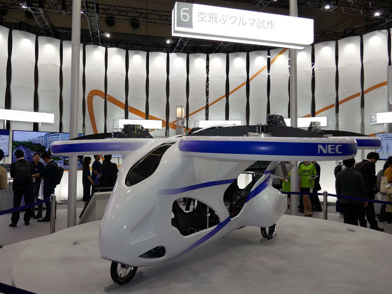 NECが考える空飛ぶクルマの試作機。無人ではあるものの、2019年8月に飛行試験をテストフィールドで成功させた