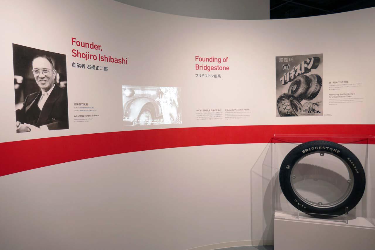 ブリヂストンの誕生、現在、未来を4つのパーツに分けて展示