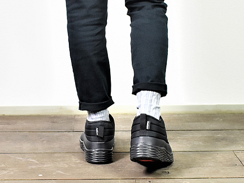 履き心地はとても暖かい上に、見た目以上の軽さ。足の甲やラバーソールに柔軟性があるため、履いたまま走っても足に負担がかかりません。ローカットで足首が固定されない点も、動きやすくて快適です。