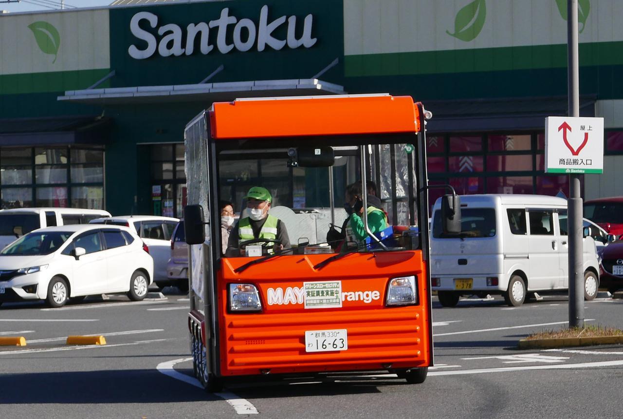 高齢化が進むエリア内を8輪電動バスで低速走行