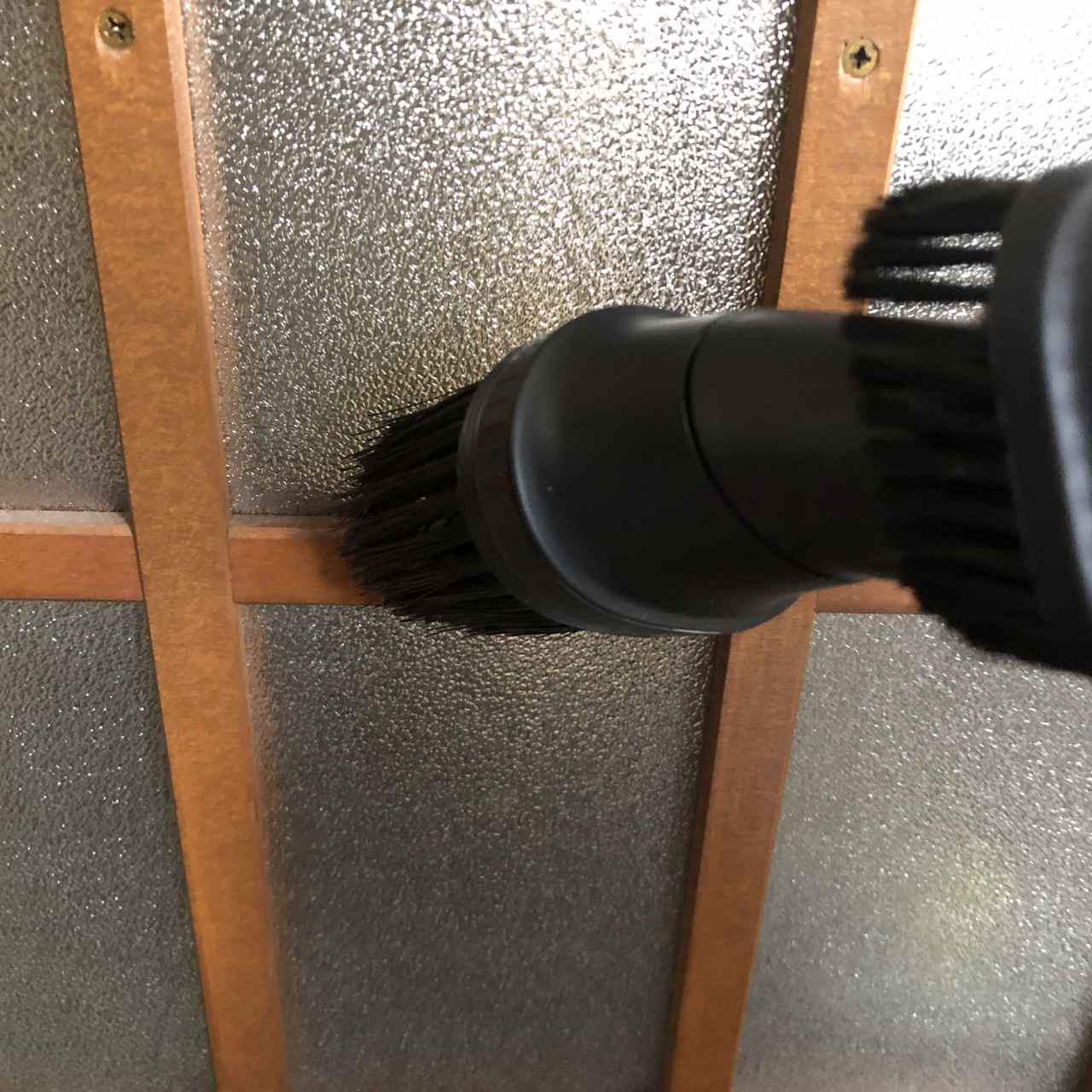 掃除機が軽いので、高いところのヘリの掃除に効果的です。普段見過ごしがちなこんな場所をあちこち掃除してみたら、「え……?」と思うくらいホコリが取れました。考えてみると、こういうところも床と同じで、当たり前に毎日ホコリがたまるんですよね。