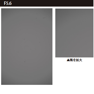 周辺光量落ちの影響をなくすには、F5.6よりも絞るか、RAW画像も撮影しておいてRAW現像時に補正するかのどちらかですが、元々程度が小さいのでどちらも構わないでしょう。絞りたくなくて、しかも周辺光量落ちの影響を排除したい場合はRAW現像時に補正、それ以外は絞ってと考えるとわかりやすいかもしれません。