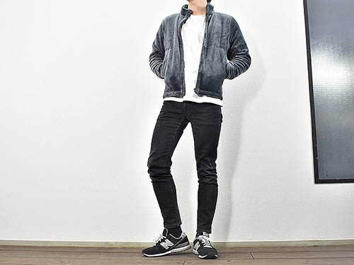 ポリエステル100%のマイクロファイバー生地を、ジャケットの形に仕立てた同商品。4990円(税込)とやや高めの価格ですが、ほかの起毛生地にはない手触りと暖かさを楽しめます。