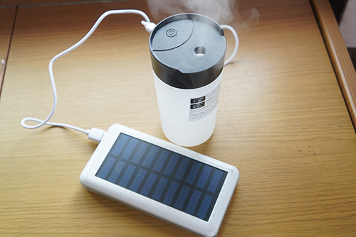 「ミニ加湿器(車用)」はUSBから電源を供給するタイプなので、変換すればさまざまな方法で使えて、とても便利です。