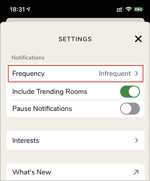 Clubhouseでは、自分がフォローしている人が主催するルームや、おすすめのルームの情報が通知として送られてきます。初期設定のままだと通知の回数が多く、うっとうしいと感じるかもしれません。そのような場合は、通知頻度を変えてみましょう。