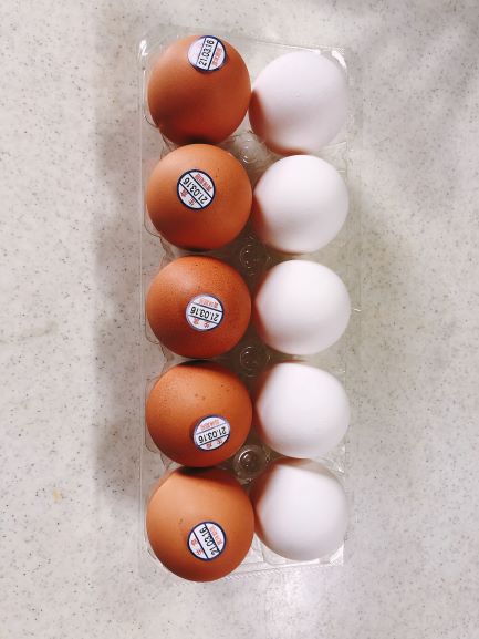 赤と白の卵を10個用意(我が家は3人家族なので1人3.3個)。少し前に冷蔵庫から出して常温に戻します。