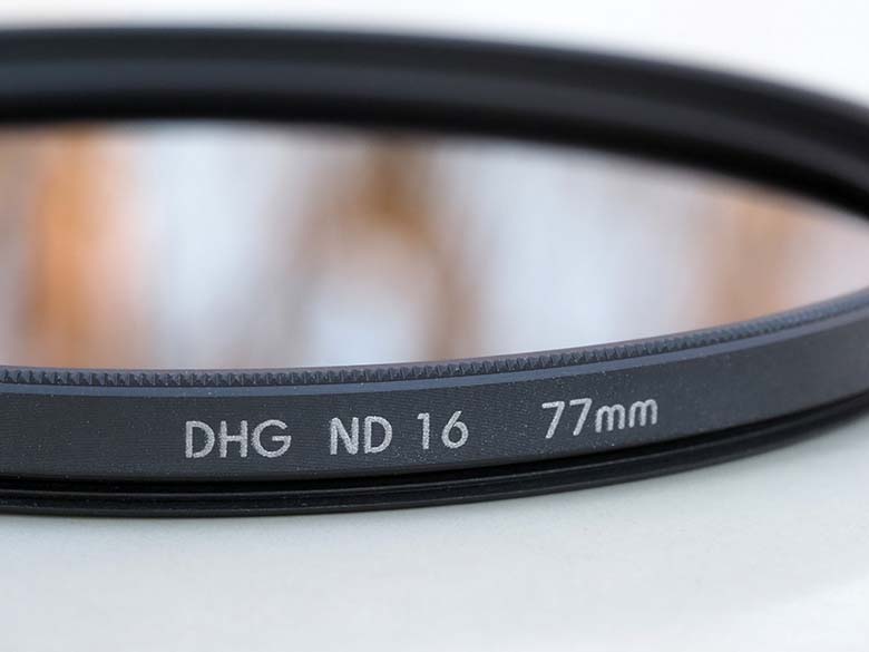 日中の低速シャッター撮影では、NDフィルターを常備しておきたい。オススメのタイプは、3絞り分の減光効果があるND8か、4絞り分の減光効果があるND16(これはND16)。なお、減光量が変えられるバリアブルタイプのNDフィルターもあるが、それはかなり高額な製品になる。