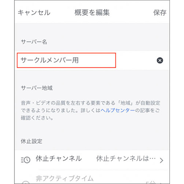 サーバー名は、初期状態では「〇〇(ユーザー名)のサーバー」となっていますが、好きな名前を設定することも可能です。
