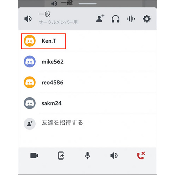 通話中にチャンネル名をタップすると表示される画面で、そのユーザーのアカウント名をタップしましょう。