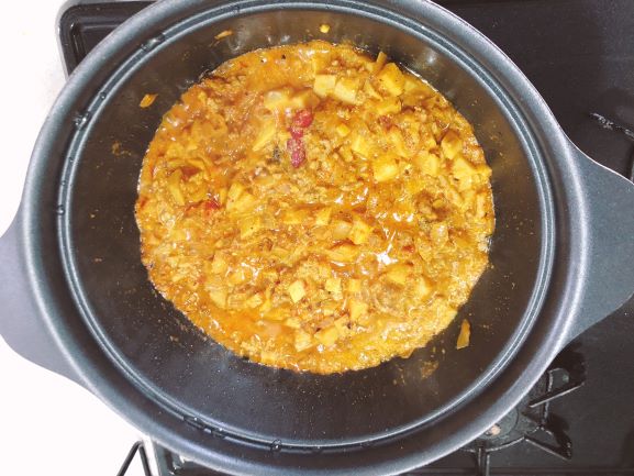 ※通常は上記レシピに水(100ml)を加えますが、ドライカレー風に仕上げるため、今回は入れていません