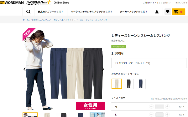 内股が縫い目のないシームレスでできた同商品。価格も1500円(税込)と手に取りやすく、ワークマンらしいコスパの良さが伺えます。