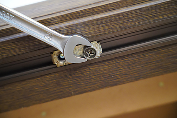 筆者の家の折戸には、スパナでもプラスドライバーでも回すことのできる金具が使われていました。松岡さんはプラスドライバーで簡単に緩めていましたが、素人の筆者には、ねじ穴をなめる可能性のないスパナでの作業のほうが簡単に感じました。