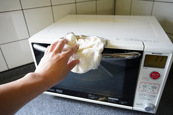 よりきれいに仕上げるために、電子レンジ内部や開閉扉のガラス面などの汚れを、ふきんなどで十分に拭き取りましょう。その後、レンジの扉を開けて、30分ほど乾燥させることが推奨されています。