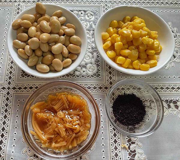 また、普段の献立に取り入れる際は、ミックスビーンズ→ハム・キュウリ・薄焼き卵の千切りに変えると中華風酢の物のバンサンスー(拌三絲)になります。冷蔵庫で冷やすとして食べると、より美味しいです。