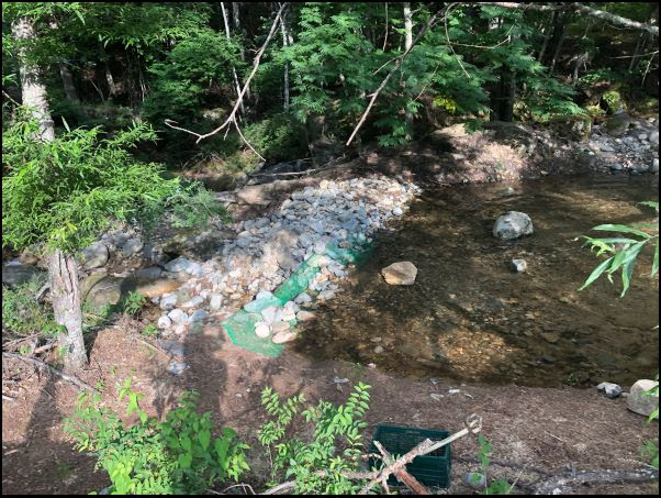 キャビンから徒歩2分ほどにある小さな川に、ホテルで養殖をしているイワナを放つのだそう。それを子どもたちが素手でつかみ取ります。