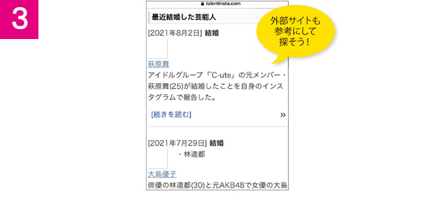 (3)最近結婚した芸能人をリストアップしているサイトを参考に探す方法もある。