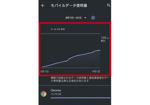 ただし、端末側でのデータ使用量の集計は、Android、iPhoneにかかわらず、あくまで概算となる。キャリア側で集計している実際のデータ量とは、必ずしも一致するわけではない。