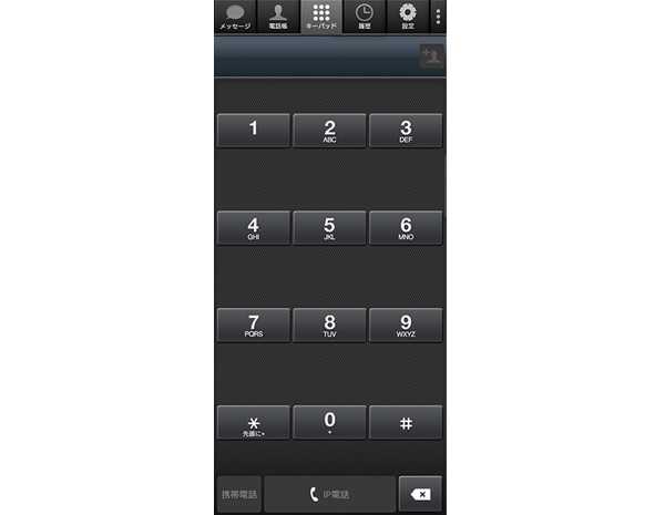 「楽天Link」の画面。IP電話の一種だが、携帯電話の電話番号で発信可能。Wi-Fi環境でも利用できる。