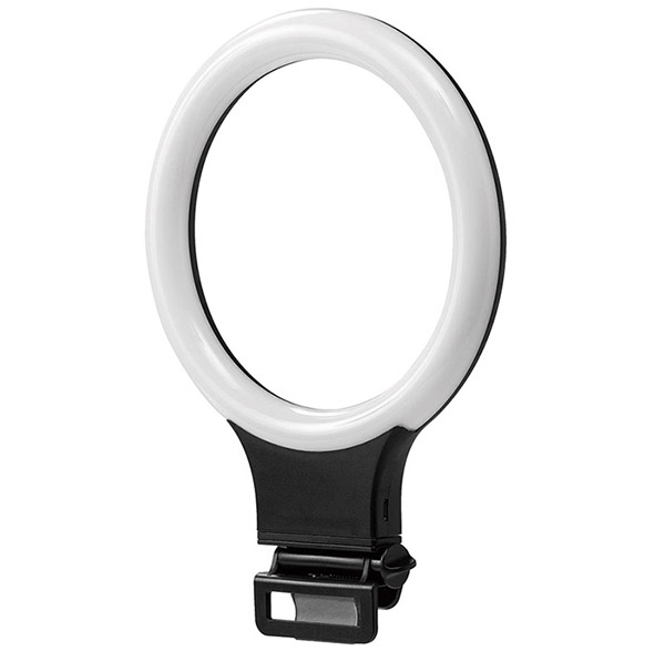 直径16センチ程度のリングライトなら、手軽にセットして、顔を明るく照らすことができます。USB給電式や充電式のものなどがあり、クリップやスタンドなどの設置方法も選べます。