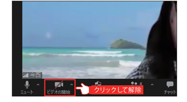 参加者を招待する前に、この画面で映像を確認しておこう。十分な明るさがあるか、映したくないものが画面に入っていないかなど、チェックしておくといいだろう。