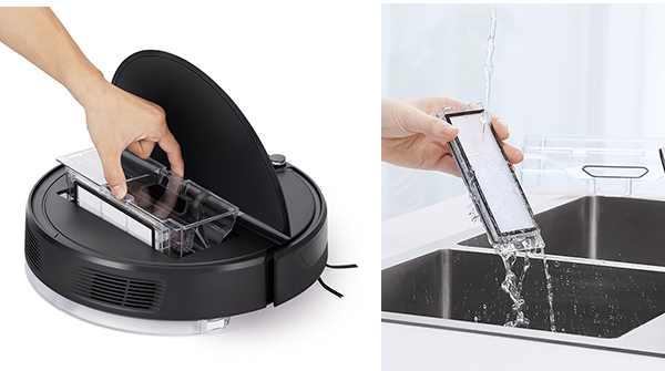 「Roborock E5」は、ゴミを捨てる手間を軽減するために、640ミリリットルの大型ダストボックスを装備している。モップクロス、エアフィルター、ダストボックスは簡単に取り外せるため、水洗いが可能で、清潔な状態で繰り返し使用することができる。