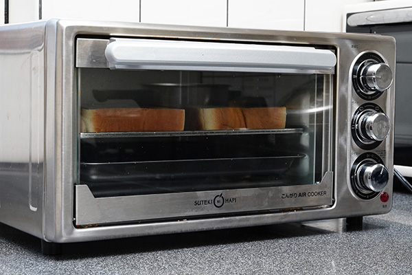 とはいえ、我が家にあるオーブントースターはこれだけなので、しかたありません。このオーブントースターで、実際に「オーブントースター用スチーム皿」を使ってトーストを焼いてみました。
