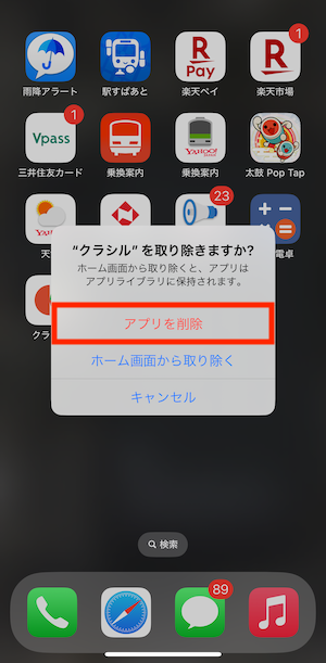 ▲続いて、「アプリを削除」をタップすると、アプリがアンインストールされる
