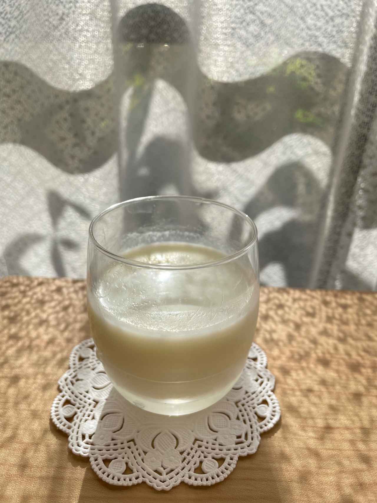最後に、バターを作る際に分離して残った水分「バターミルク」の活用例を紹介します。バターミルクは、生クリームから乳脂肪分を取り除いた低脂肪牛乳のようなもの。今回、約160gのバターミルクができたので、半分ずつをドリンクと料理にアレンジしました。