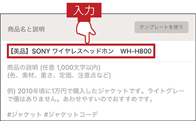 「商品の説明」欄をタップし、おすすめポイントや注意点を入力する
