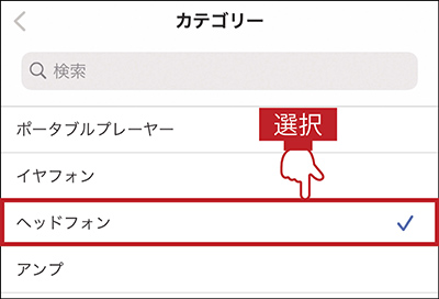 画面上部の「カテゴリー」をタップし、商品のジャンルを選択。