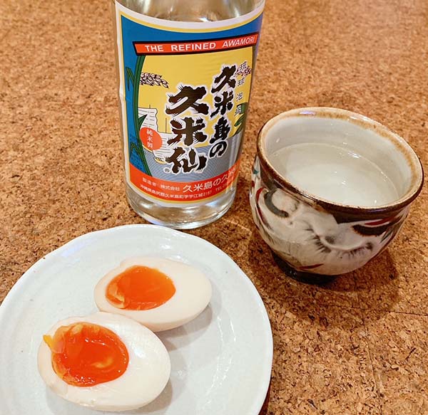 粕漬けの味玉は、漬け込むときから「絶対に泡盛と食べよう」と思っていた。私は、焼酎なら芋、もしくは泡盛が好き。そう。匂いの強い焼酎が好きなのだ。粕漬けの味玉なら、泡盛の個性にも負けないはず。さて、どうだろうか。