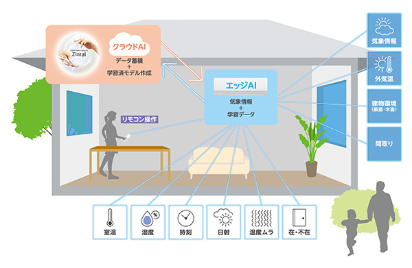 「ダブルAI」は、エッジ(本体)とクラウドの2つのAI により、自分好みの設定や使用環境を学習して成長する。また、学習データや気象情報をもとに自動運転を行い、先回りして快適な空間を提供してくれる。