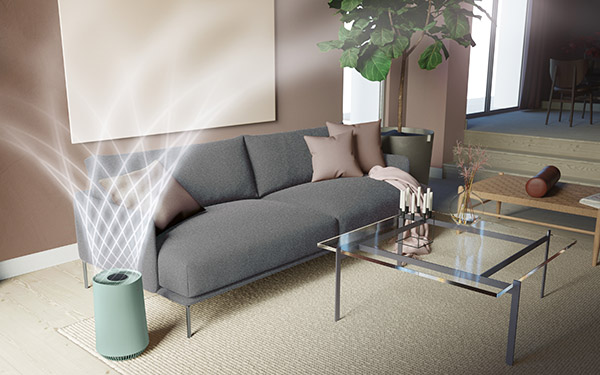 「Flow A3 UV」はパワフルな集塵力を備えているため、室内の空気を360度全方位から効率的に吸い込んでくれる。さらに、エアサラウンドシステムにより、らせん状にキレイな空気を送り出すことで、部屋の隅々まで空気を循環してくれる。