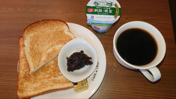 カフェ・ド・クリエの最安モーニングは「小倉バタートーストセット」です。以前は東海エリア限定メニューだったようですが、今は全国店舗で楽しめます。