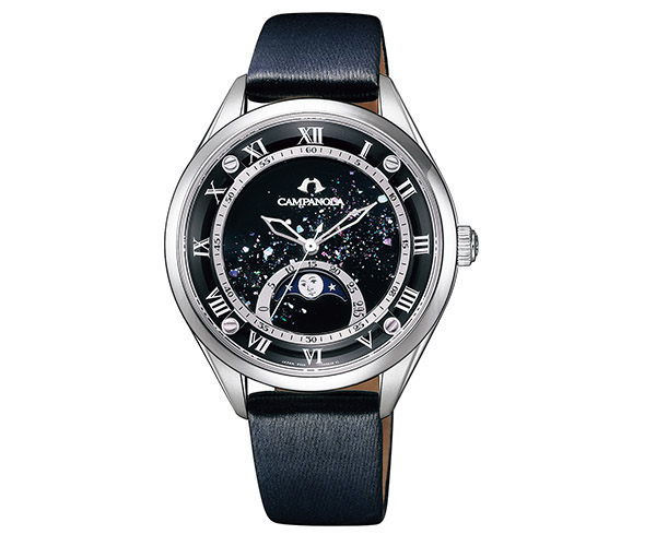シチズン時計は、時を愉しむためのウオッチブランド「CAMPANOLA(カンパノラ)」から、「俐月(りつき)」(EZ2000-14E)と「燈寧(あかね)」(EZ2002-01W)の2モデルを発売した。星空や茜空を漆で表現したムーンフェイズモデルで、いずれのモデルも、36mm径小ぶりなケースを採用しているから、男女問わず誰にでもフィットするサイズ感となっている。
