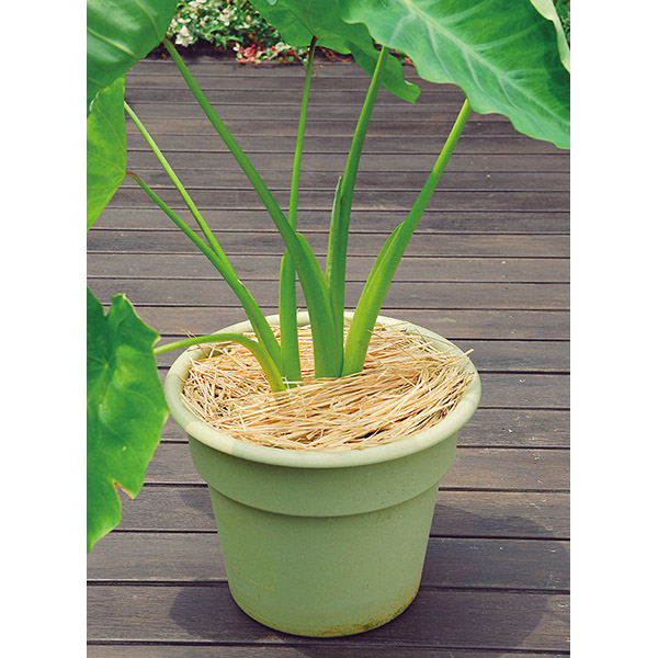 夏は土の乾きが早く、水やりが大変です。コンテナに敷きわらをして乾燥を防ぐとよいでしょう。