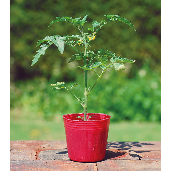 トマトは一回り大きなポットに植えかえて、1番花が咲くまで育苗してから定植する