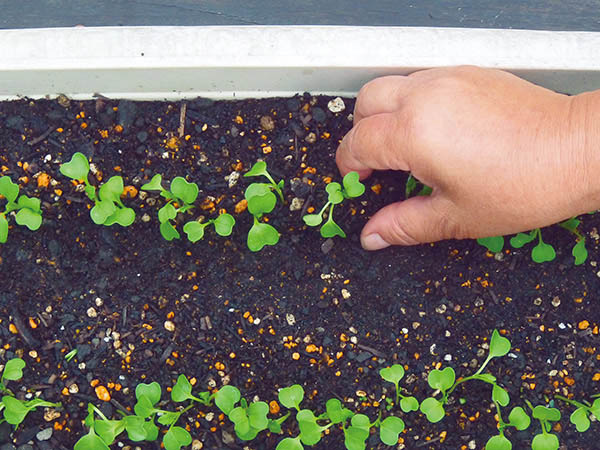 ベビーリーフなど小さな苗のうちから間引きながら利用する葉菜やラディッシュなどに向いていますが、間引きが遅れると徒長するので、注意が要ります。
