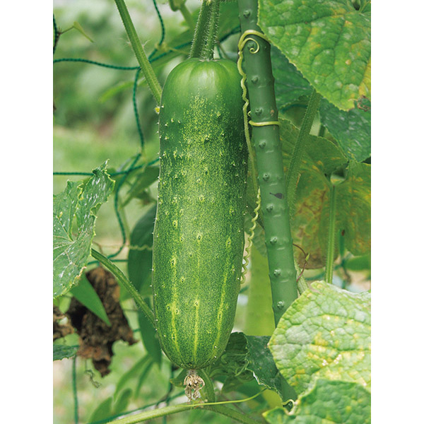 中国系「四葉」の改良種。表面にイボが多くごつごつした感じだが、果皮が薄く香り、歯ごたえがよい。実の長さ21~25cmで収穫する
