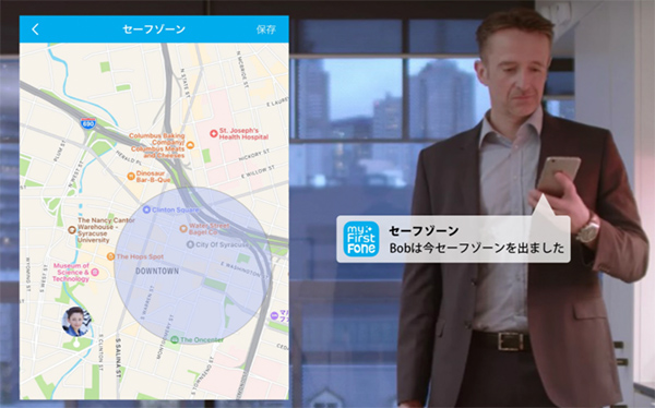 さらに、アプリ上の地図で200~2000ⅿまでのエリアをセーフゾーンとして設定できるため、万が一子供が設定エリアを超えた場合は、保護者にその内容が通知で送られてくるようになっている。このセーフゾーンは、複数の登録が可能だから、「学校」「家」など、エリア設定すれば、安心して子供を外出をさせることができる。