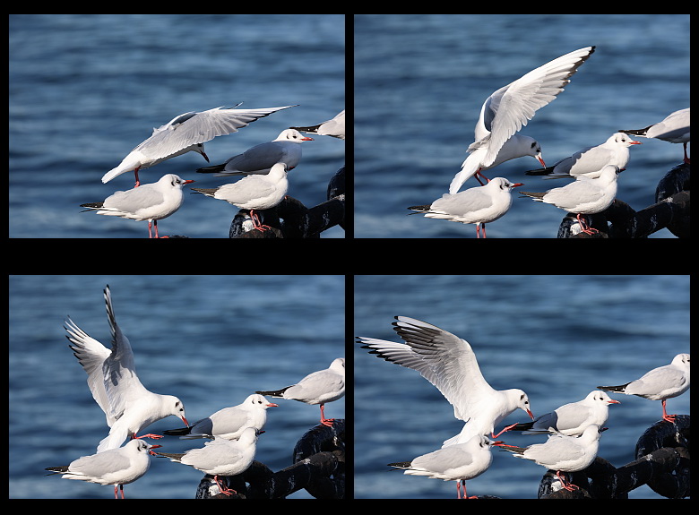 高速連写で数十枚撮影した中から、連続する4枚の画像を並べてみた(左上、右上、左下、右下、の順番)。