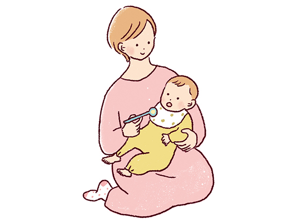 5~6カ月ごろ、赤ちゃんが元気で機嫌がよく、ママ・パパが離乳食を始める準備ができたときに始めるとよいでしょう。