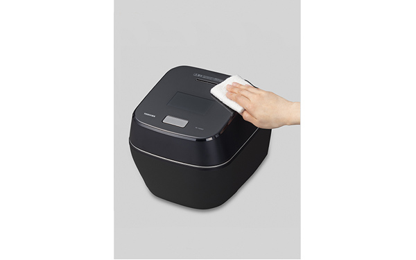 フラットタイプのパネルと凹凸が少ない内蓋を採用しており、内蔵蒸気口も、ワンタッチで取り外し可能なので分解して洗いやすく、手入れも簡単になっている。