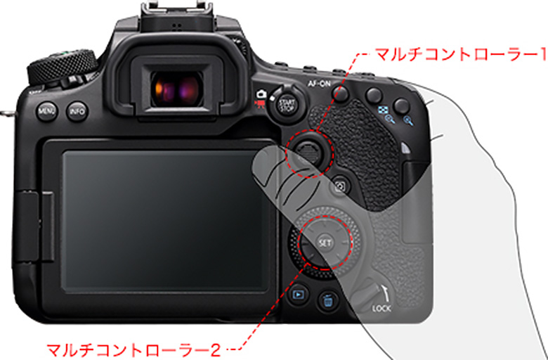 従来からのマルチコントローラー(マルチコントローラー2)に加え、マルチコントローラー1も搭載。AFフレーム選択や瞳AFでのフレーム移動などに威力を発揮する。